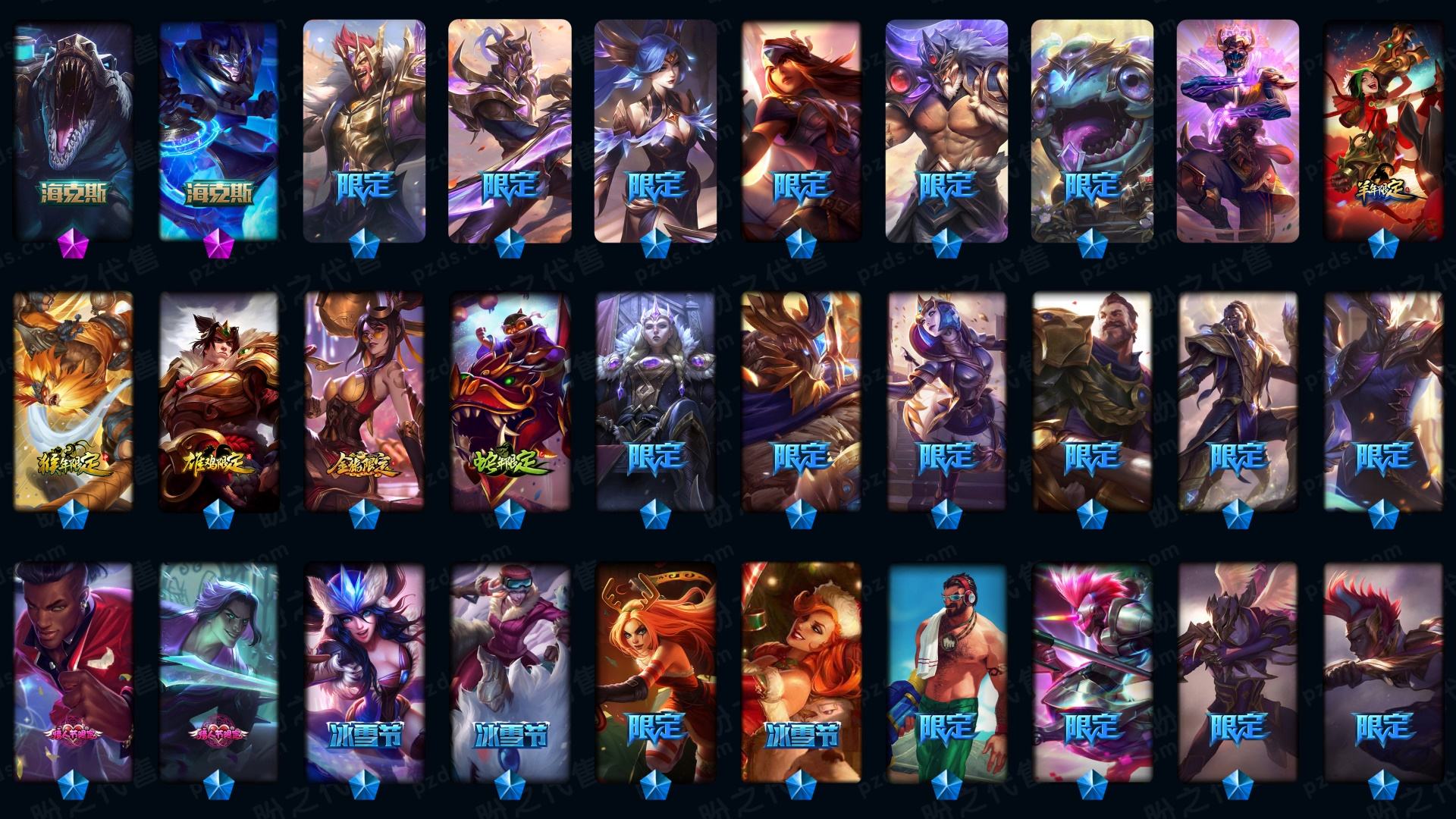 1882皮肤〓可排位妹子号白银〓全英雄〓24神话〓23臻彩〓301炫彩〓未来战士〓至臻海克斯皇子多套生肖新泳池神拳...
