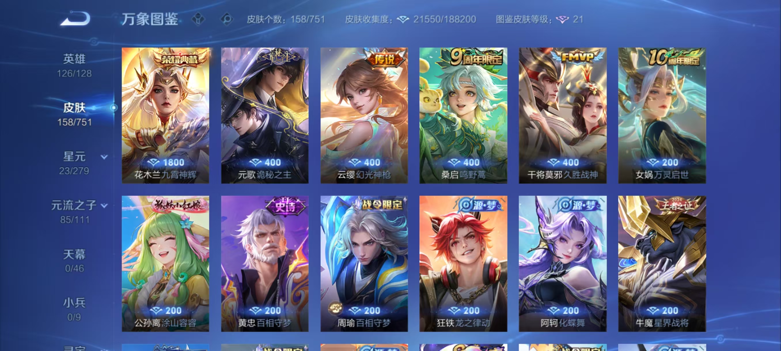 Z125-158皮肤-元歌诡秘之主,干将久胜战神,花木兰