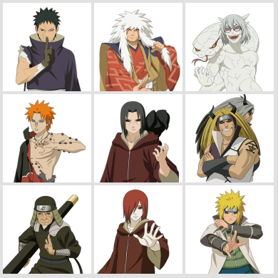 天道超,秽土长门,忍战艾,秽土三代,秽土鼬,秽土水门,仙人兜,大筒木舍人