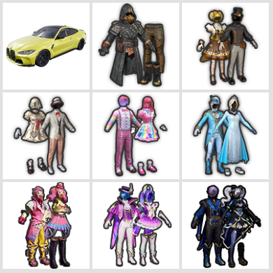 单子id,穸,金色粉丝标AG,m416星际漫游, 雪国幻梦,龙师傅外套, 巧克力三姐妹,小丑鱼,都市猎人,寒蝎幽灵...