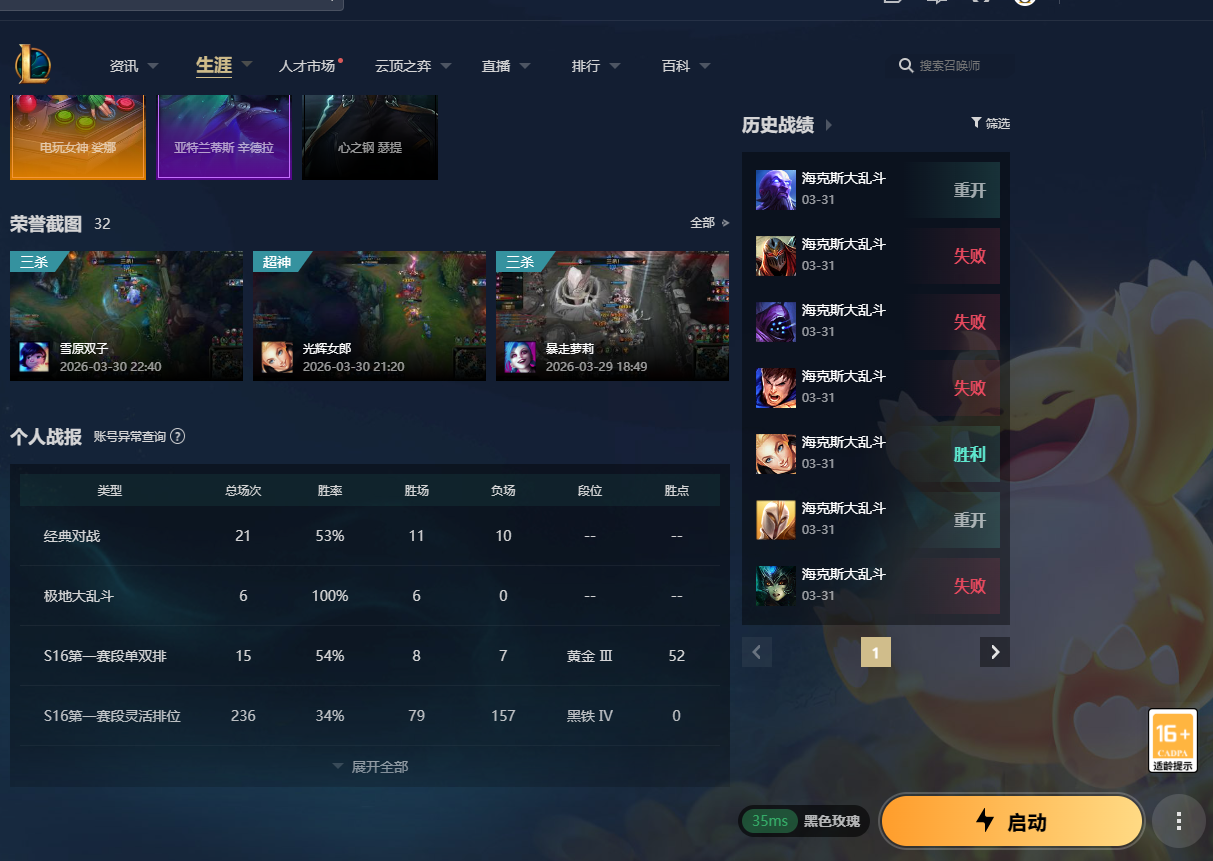 (月沉舟)黑色玫瑰黑/铁百场灵活负胜率号/海斗负/每日维护/真实段位/