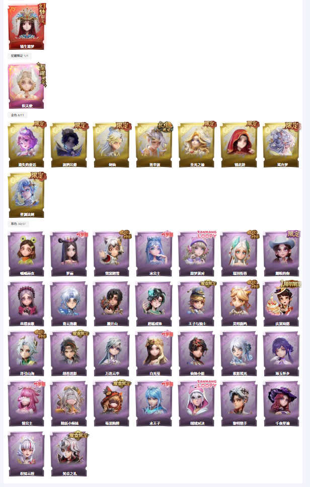金色皮肤:8 紫色皮肤:31 是否有兔宝:否 道具皮肤:99