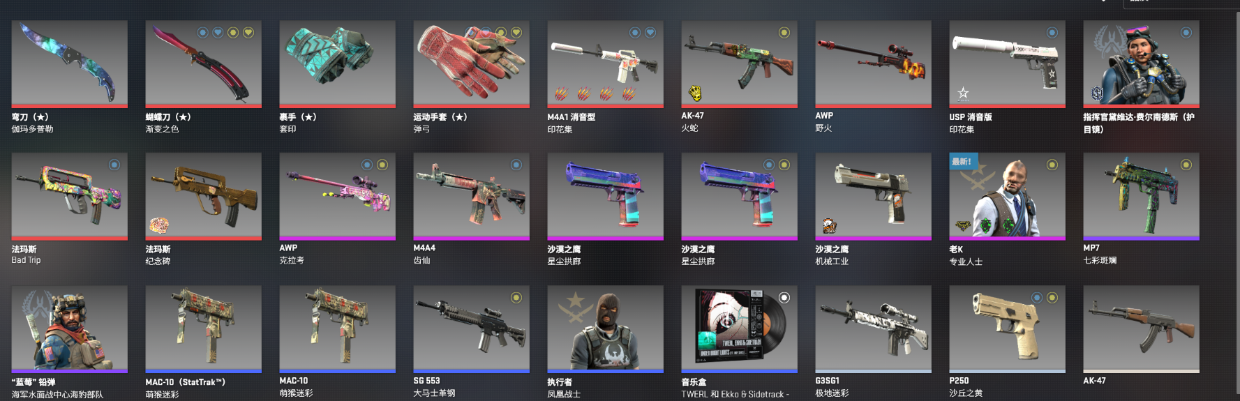 完美略磨 弹弓套印渐变蝴蝶伽马弯刀火蛇克拉考awp印花集 星尘沙鹰